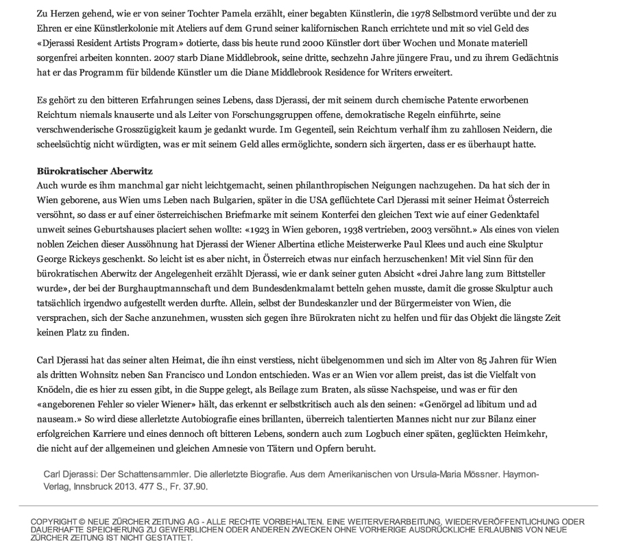 Neue Zürcher Zeitung (18 Dec. 2013)